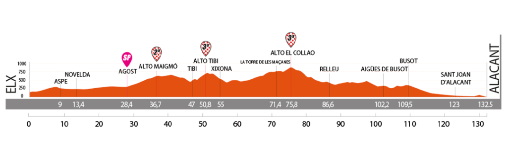With 2000m of vertical gain, this blockbuster final day is bound to create headlines that will impact the entire early season. A succession of tough climbs at the start is even tougher than the offering on stage 2, with the parcours then gradually rolling down to Alicante over 57 kilometers from the top of the 12.4km at 3.1% El Collao climb.