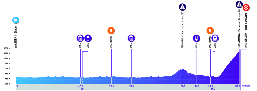 Just like in previous editions, the race puts its mountain-top finish on stage 2. After a flat run-in to the base, the peloton will take on the 9.6km at 8% climb to Vercorin. If it‘s all together, expect the pace to be ramped up quickly and for early strikeouts for the leader’s jersey.