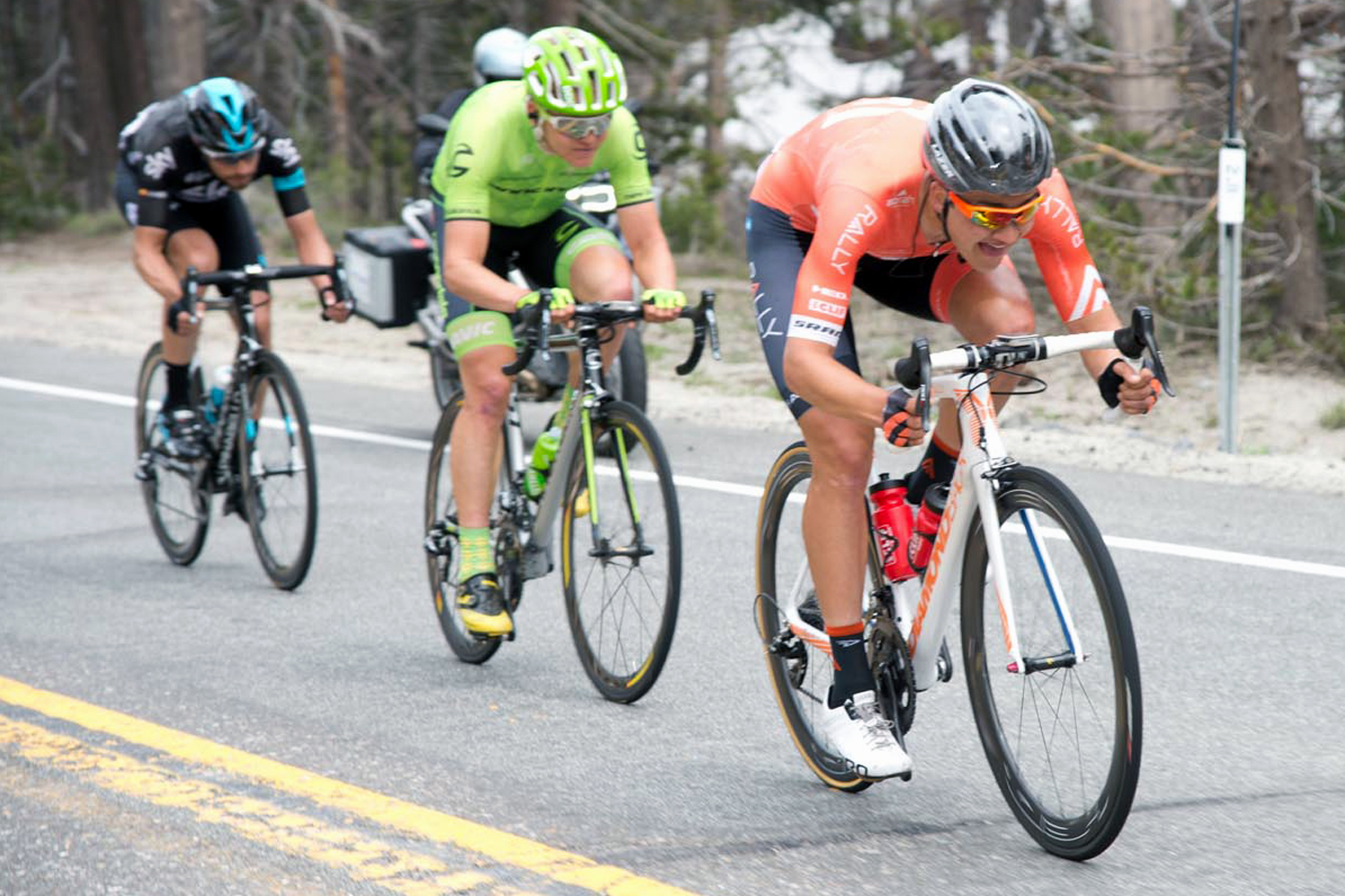 In stage four Routley joined the day's escape and took maximum KOM points to defend Huffman's lead. A tough finish onto the Laguna Seca Raceway in Monterey brought Britton home in ninth, moving him up to ninth overall. Stage five saw an 18-man move form, with De Vos covering it for Rally Cycling. As Routley did the day before, De Vos took most of the KOM points on the road to South Lake Tahoe to defend Huffman's jersey. De Vos’s efforts led to a split in the breakaway that saw him, Tom Skujins (Cannondale) and Xabier Zandio (Sky) go clear. On the final climb, De Vos marked Zandio and Skujins coming into the final corner before launching his sprint. He quickly got a bike length on his two breakaway companions but was unable to fend off Skujins, who came by on the outside to take the win.