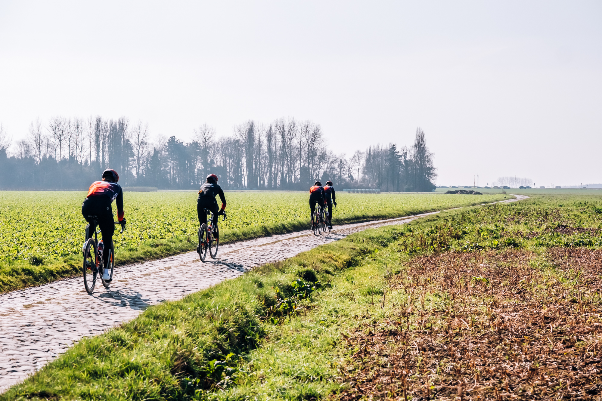 Maggie Coles-Lyster, Romy Kasper, Kathrin Schweinberger, and Lily Williams headed to Northern France to cross the pavé, including the five-star sectors of Mons-en-Pévèle and Carrefour de l’Arbre.