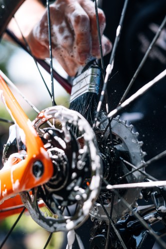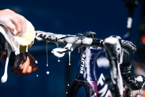 - Scrubbing off the road dirt.