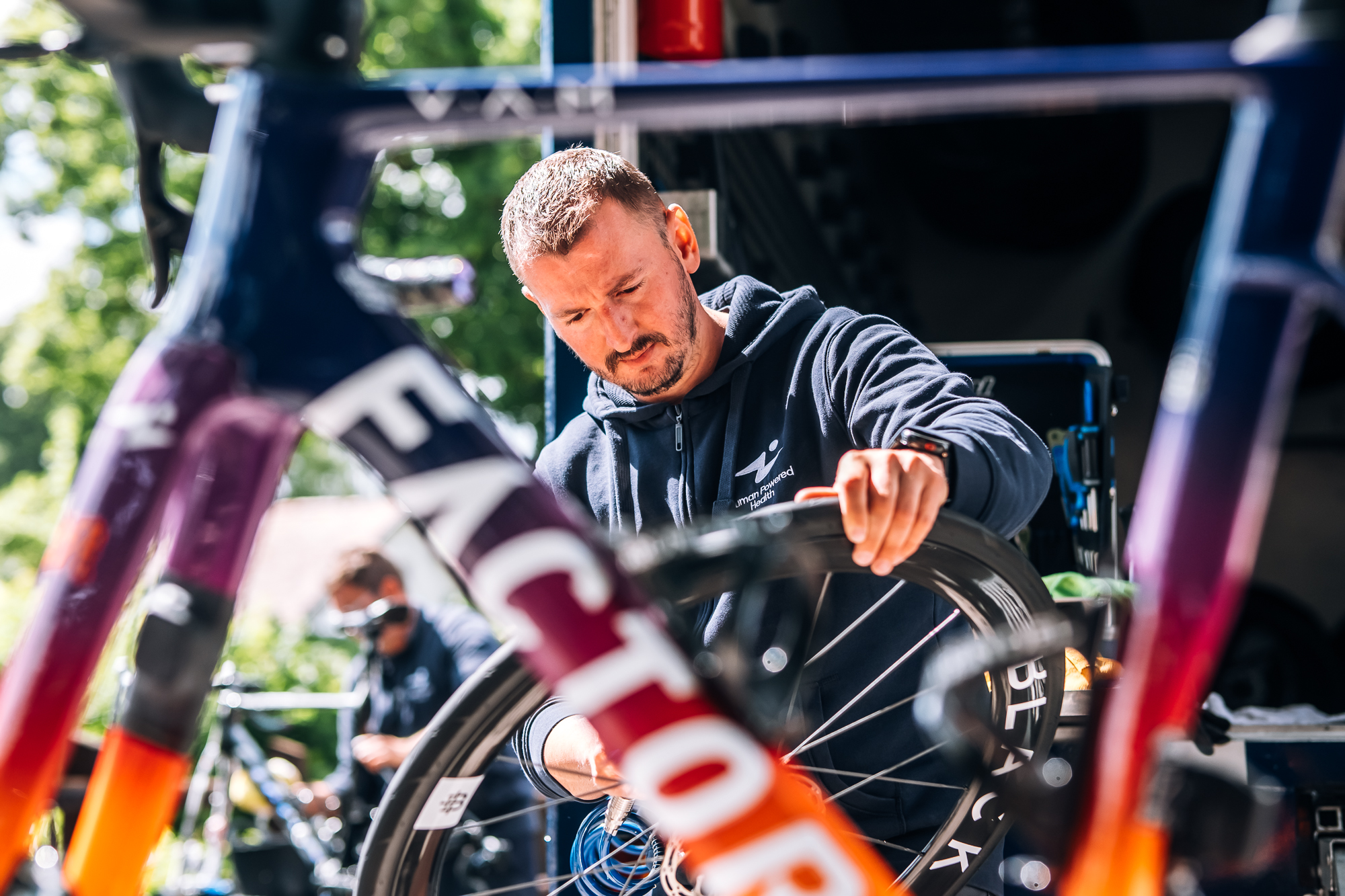 - The bikes get a deep clean each stage.