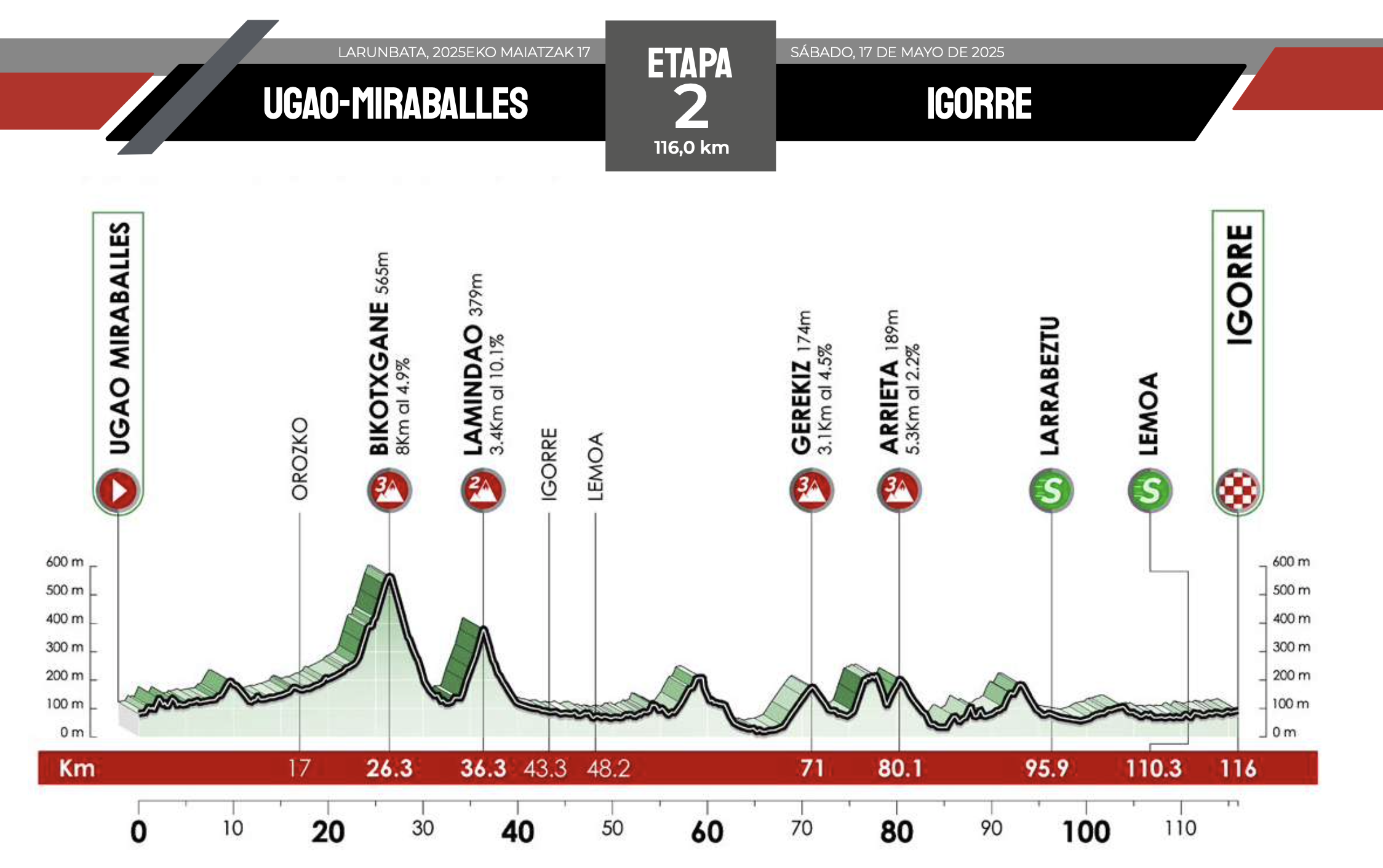 5/17 Stage 2 | Ugao-Miraballes – Igorre (116 km) Hilly