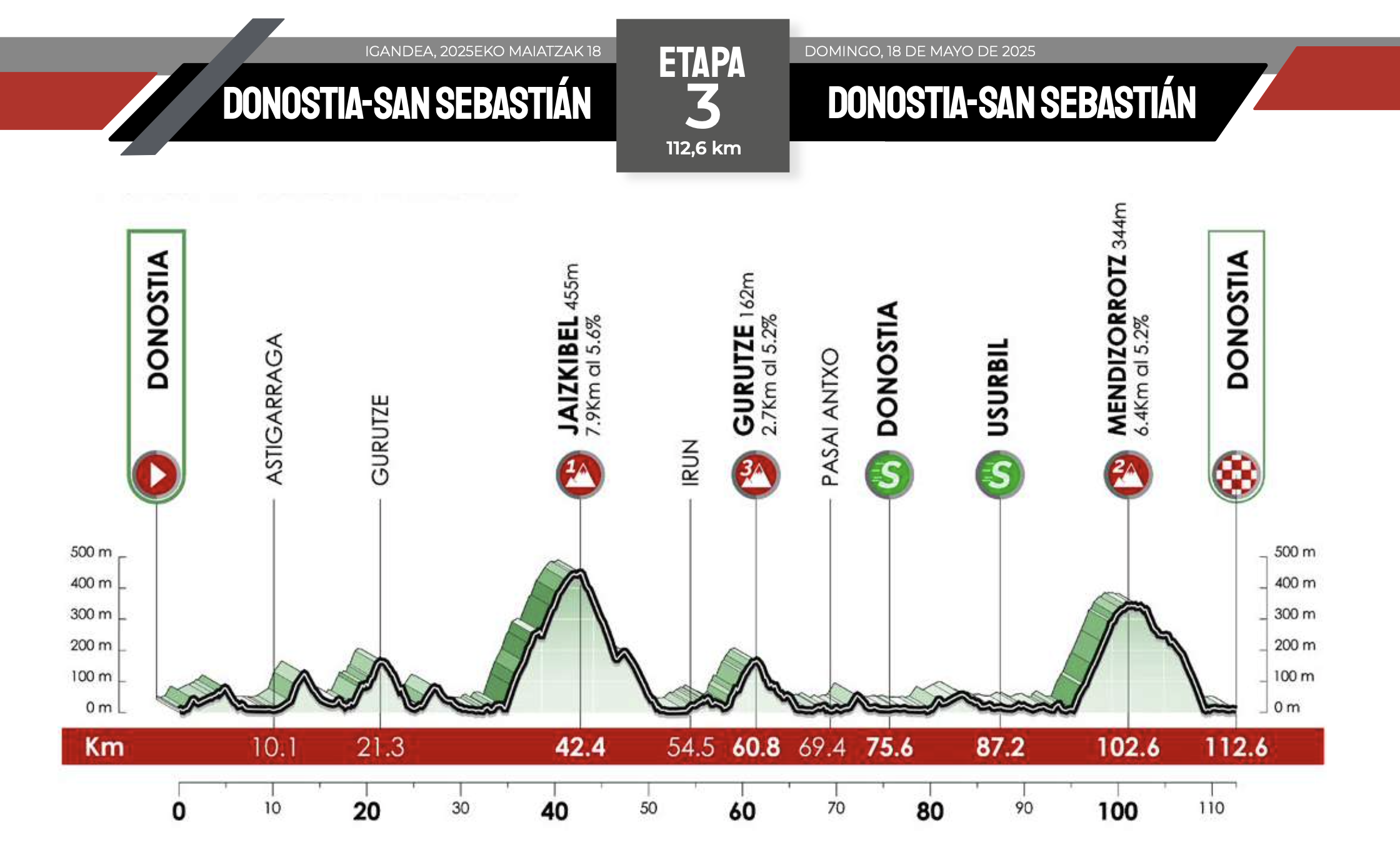 5/18 Stage 3 | Donostia – Donostia (112.9 km) Medium Mountains