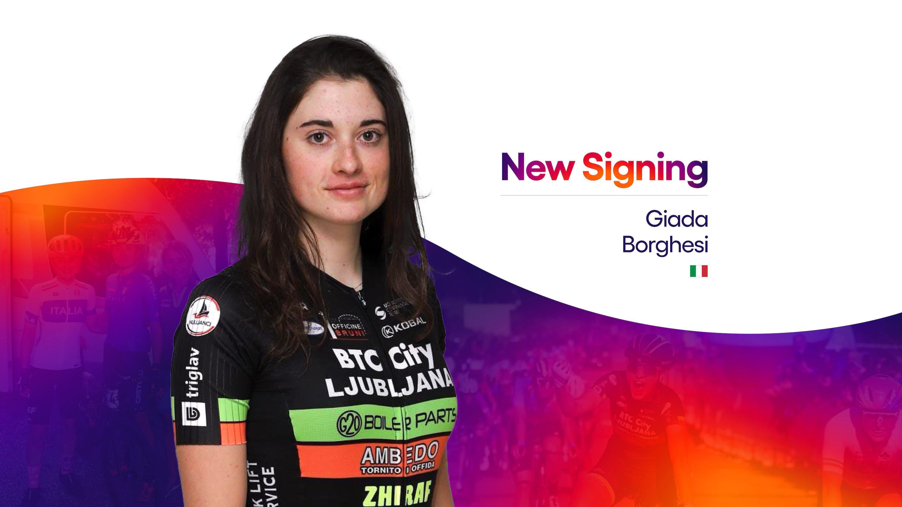The 21-year-old from Cles in northern Italy transfers from BTC City Ljubljana Zhiraf Ambedo and will race at the Giro d’Italia Women, starting July 7.