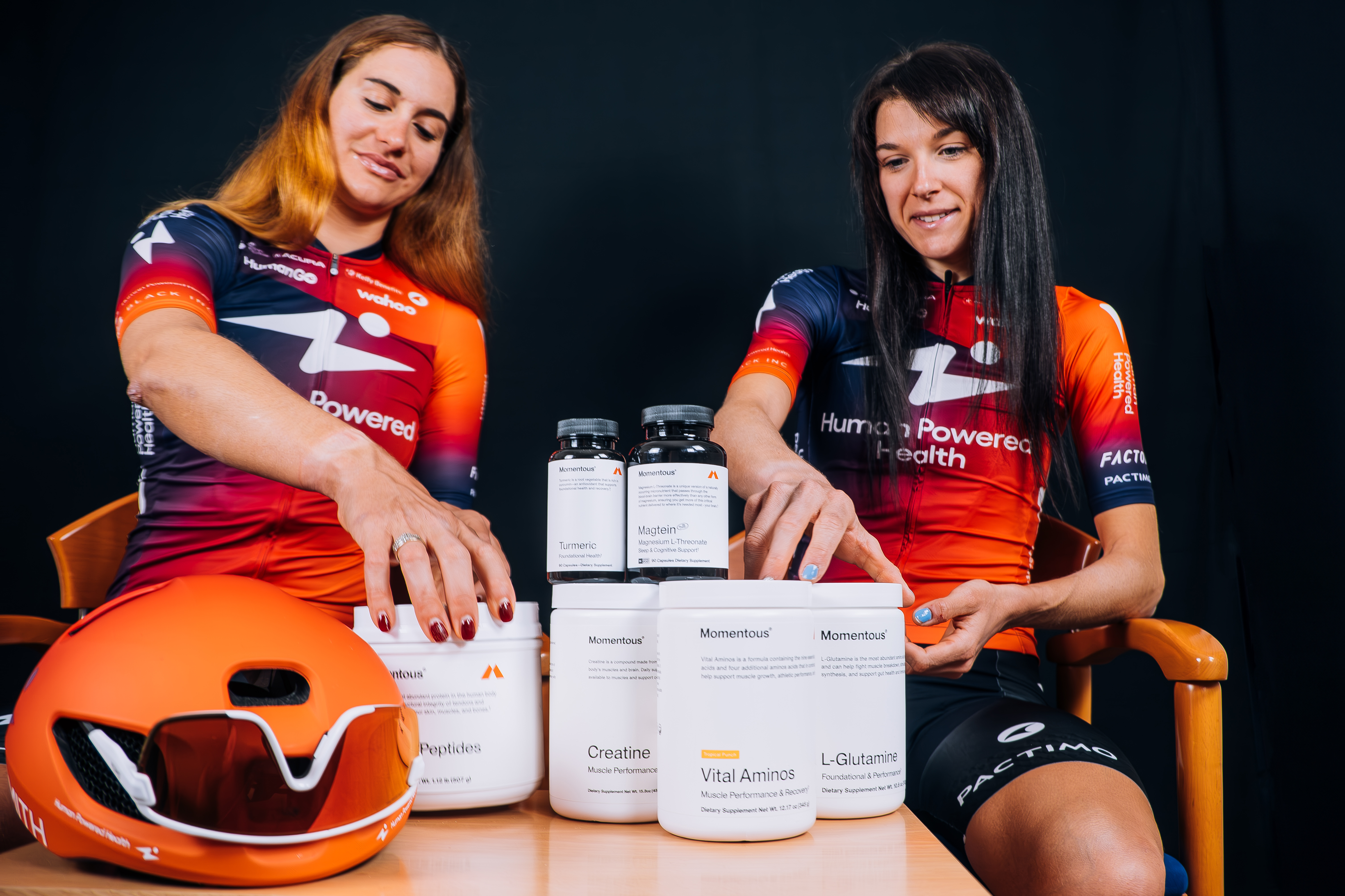 This partnership unites three leaders in their fields. Human Powered Health provides longevity and athletic performance services using evidence-based research and cutting-edge technology. Momentous is a wellness and nutrition company with a mission to empower the relentless pursuit of progress in health and performance by providing the highest quality supplements. Human Powered Health Cycling is one of the premier and longest-running US-based Women’s WorldTour teams in professional cycling. By aligning their expertise and values, these organizations will build a comprehensive, data-driven foundation for athlete health and performance.