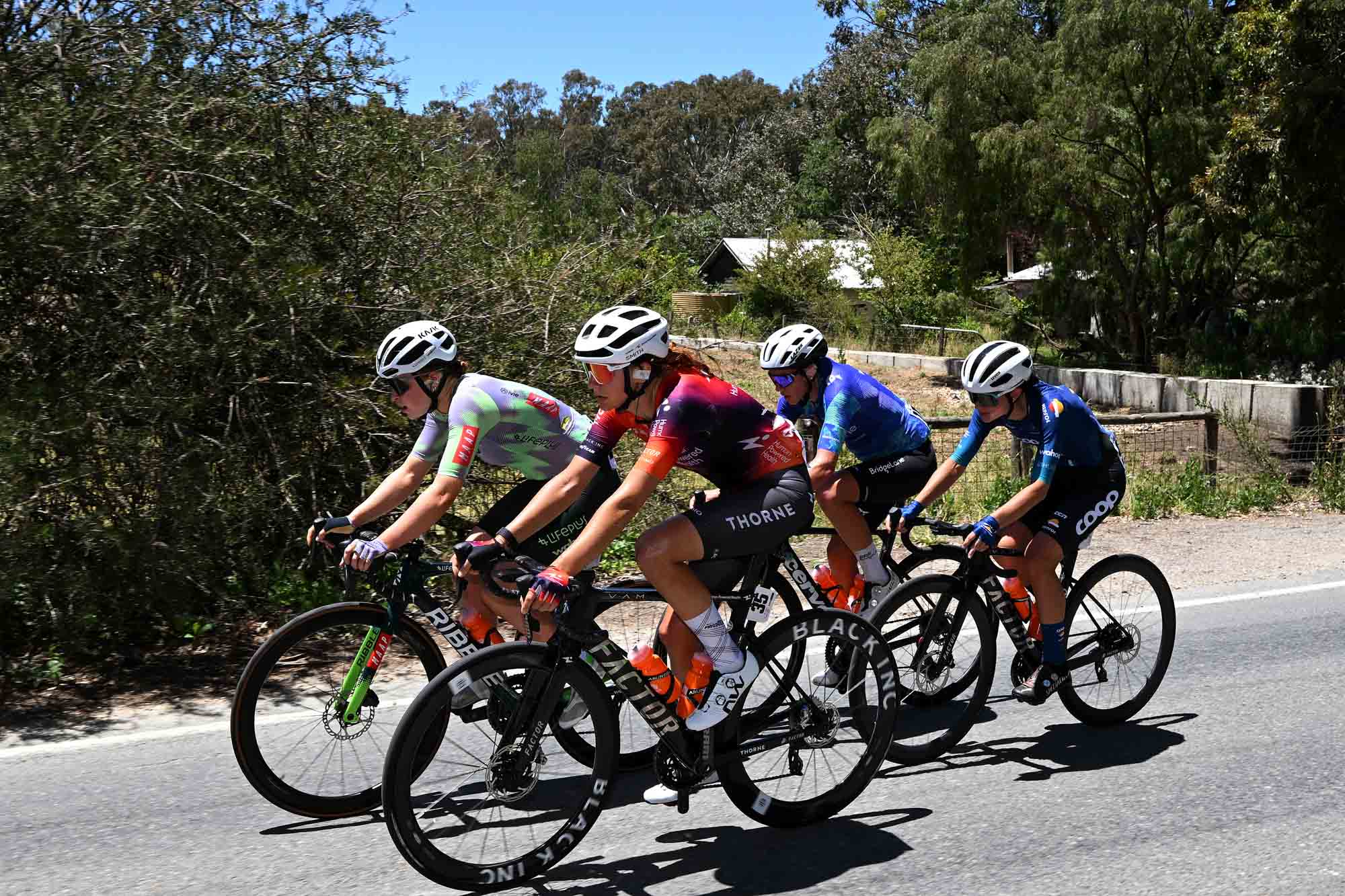 Racing in 104 degrees, Ragusa launched the move with India Grangier (Team Coop – Repsol) and Matilda Reynolds (Team Bridgeline WE) with the trio later joined by Kate Richardson (Lifeplus Wahoo).