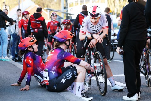 The team came into Samyn Ladies after a crash-addled Omloop Nieuwsblad on Saturday. Jaskulska herself was caught up in a large one before the race-defining Muur-Kapelmuur and sported bloody elbows at the finish, an experience she used as motivation.