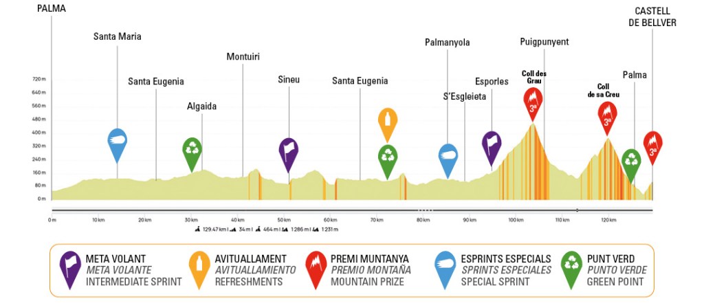 The Trofeo Palma has a back-loaded profile with the Coll des Grau and Coll de sa Creu coming in the final 30km before a finishing kick up to Castell de Bellver. Climbers will have to be as adept going downhill as they are going up.