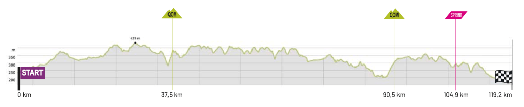 We’re on familiarly hilly ground on the final day but with the majority of the climbing coming early on, a strong team could take advantage of tired legs and cause splits early.