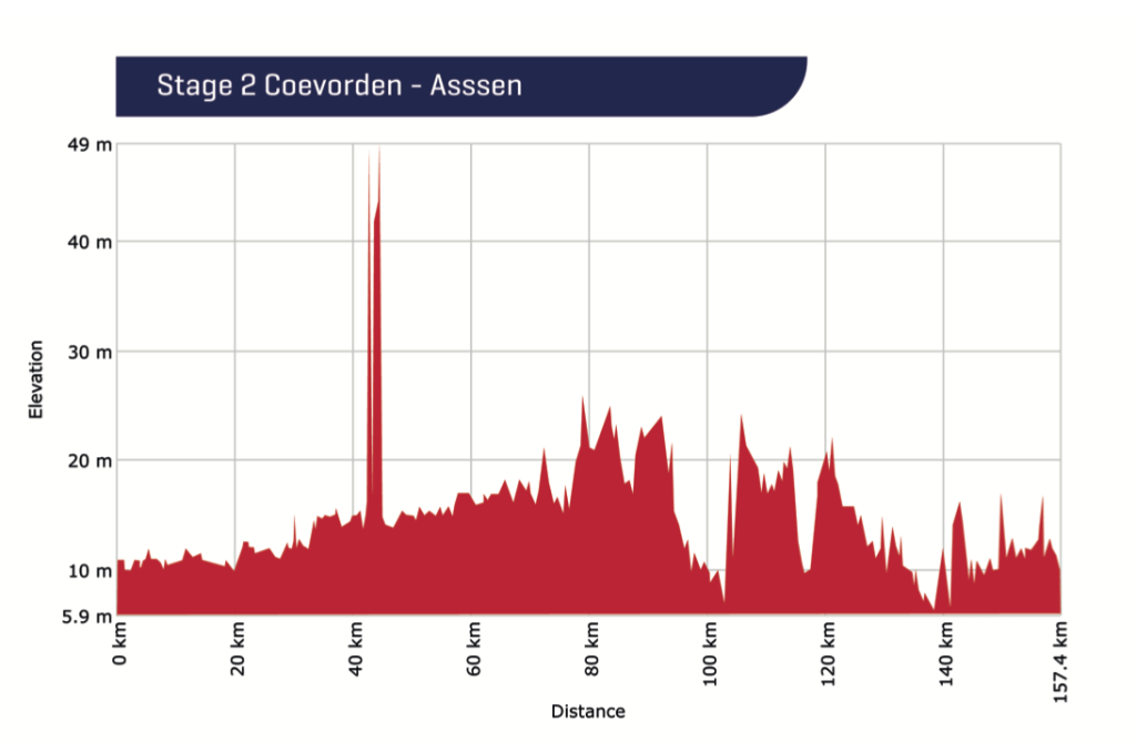 With an ascent of the cobbled VAMberg, possibly one of the Netherlands’ most famous climbs, and a crossing of the Steenhopenweg cobbled sector, stage 2 is reminiscent of the now defunct Ronde Van Drenthe’s previous route. Like many of those editions, the trigger points will test the peloton but it will more than likely end in a bunch sprint.
