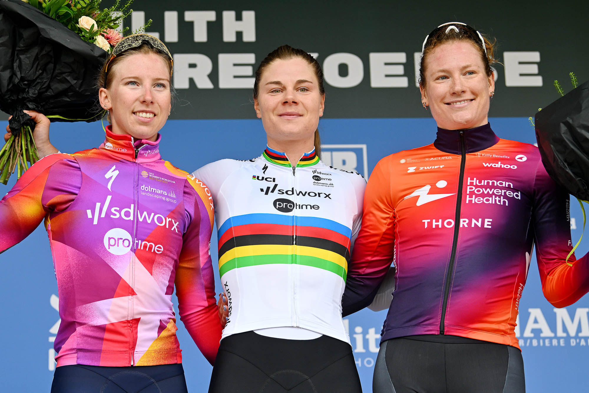 - On the podium with Lorena Wiebes and Lotte Kopecky. Photo: GettySport
