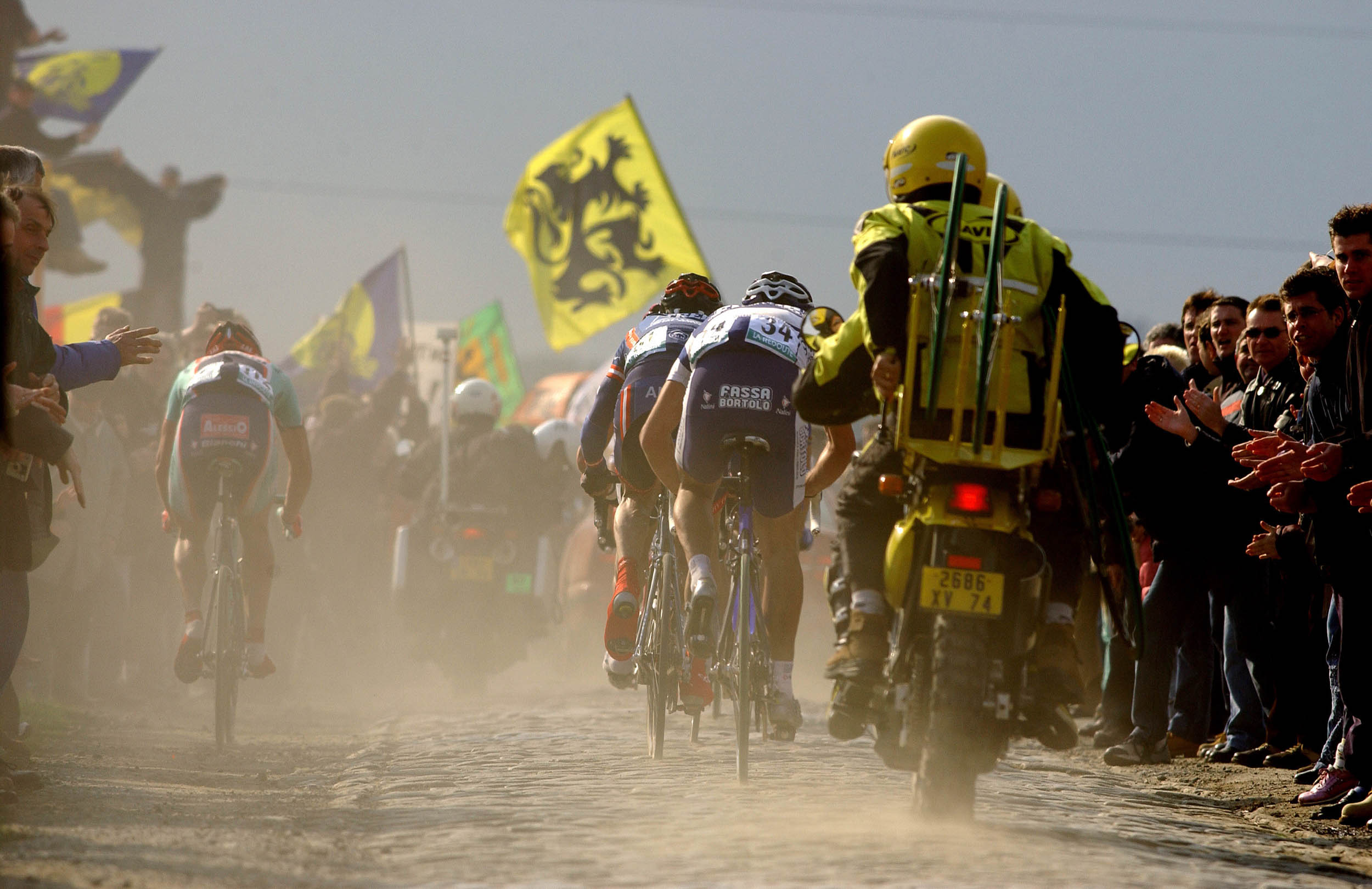 Arguably the best film ever made about professional cycling, an indelible theme was the clash on the cobbles leading to an unheralded victor, Marc Demeyer. 28 years later, in 2004, came another brutal edition, and another historic winner, our now Head of Race, Magnus Bäckstedt.