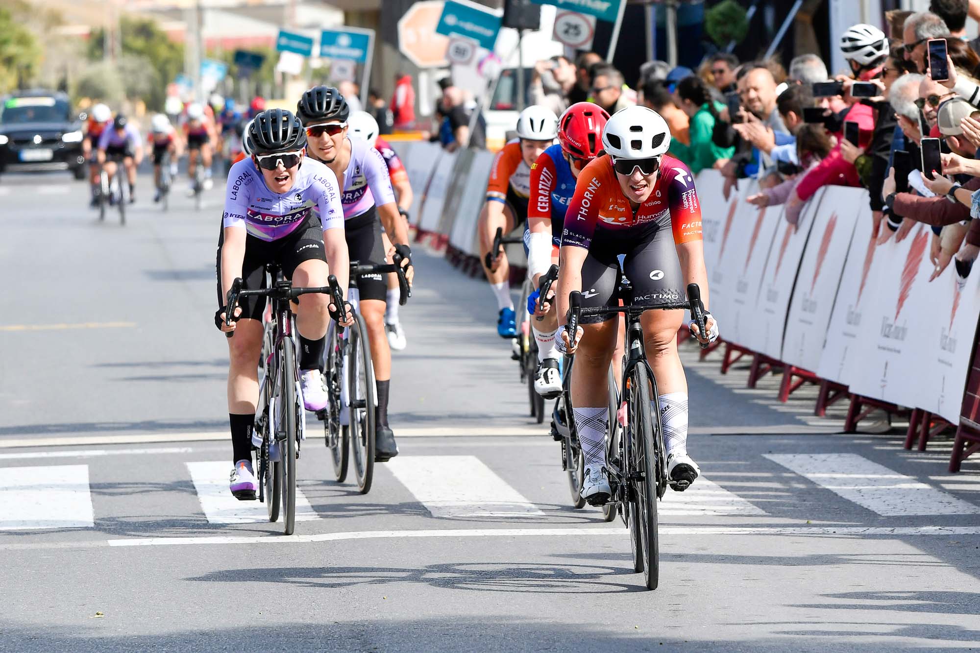 Yuliia Biriukova sprinted to her first podium for Human Powered Health, finishing second at Clasica de Almeria with teammate Linda Zanetti winning the bunch sprint behind for third.